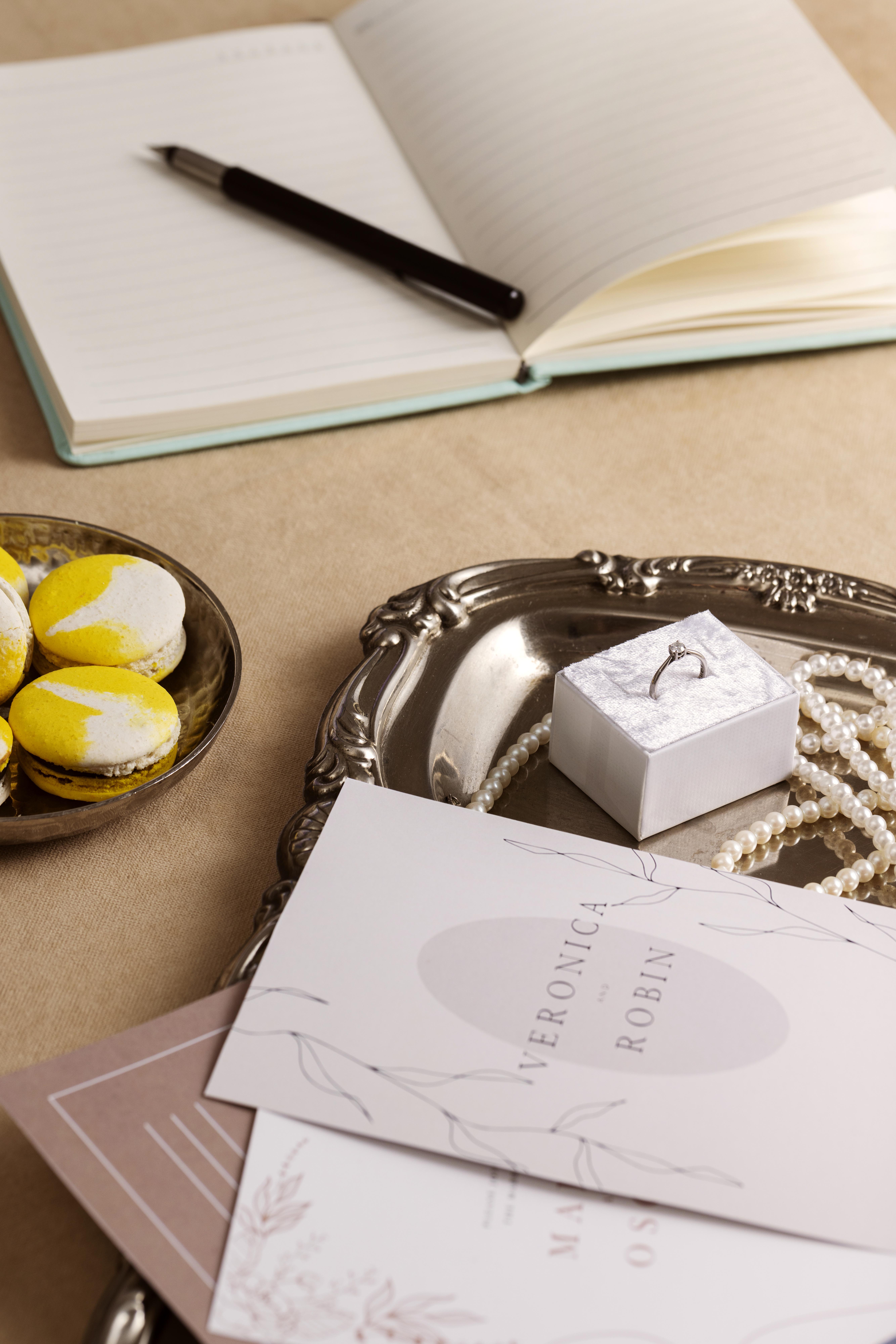 Options luxe : vernis sélectif, dorure à chaud, coins arrondis.
